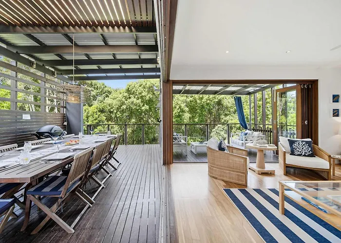 De 3-slaapkamer Family Beach House At Sebel Twin Waters Resort villa ligt op 12-minuten loopafstand van Aqua Fun Park en nodigt gasten uit om te genieten van een zonneterras.
